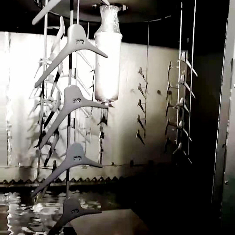 注意:吊挂具对静电喷涂的影响是较大的。这是因为长时间大批量生产后,吊挂具作为接地极同样很容易吸附上涂料,如不定期清理、更换,形成较高的电阻,大大降低静电吸附效果。另外,应特别注意工件的悬挂方式,以尽量减少喷涂死角。漆膜未干之前,应妥善保护,避免烈日直晒或严寒冰冻。